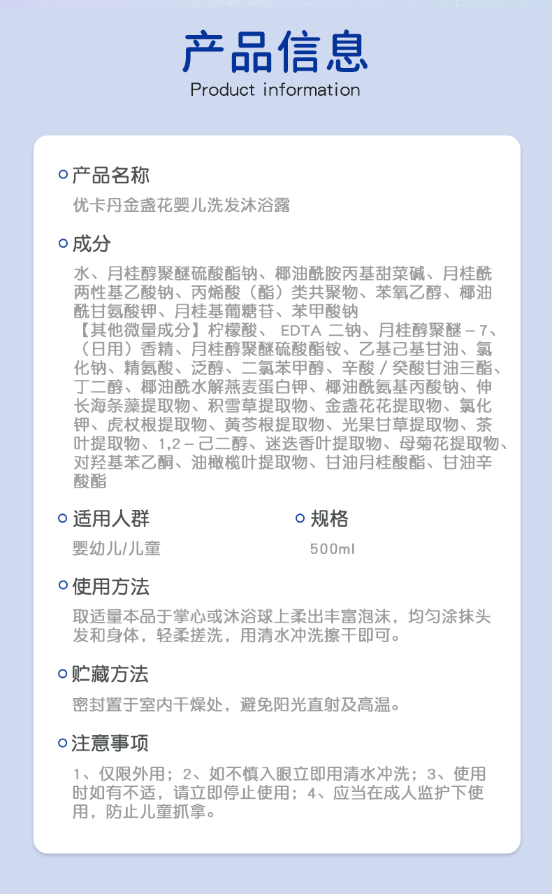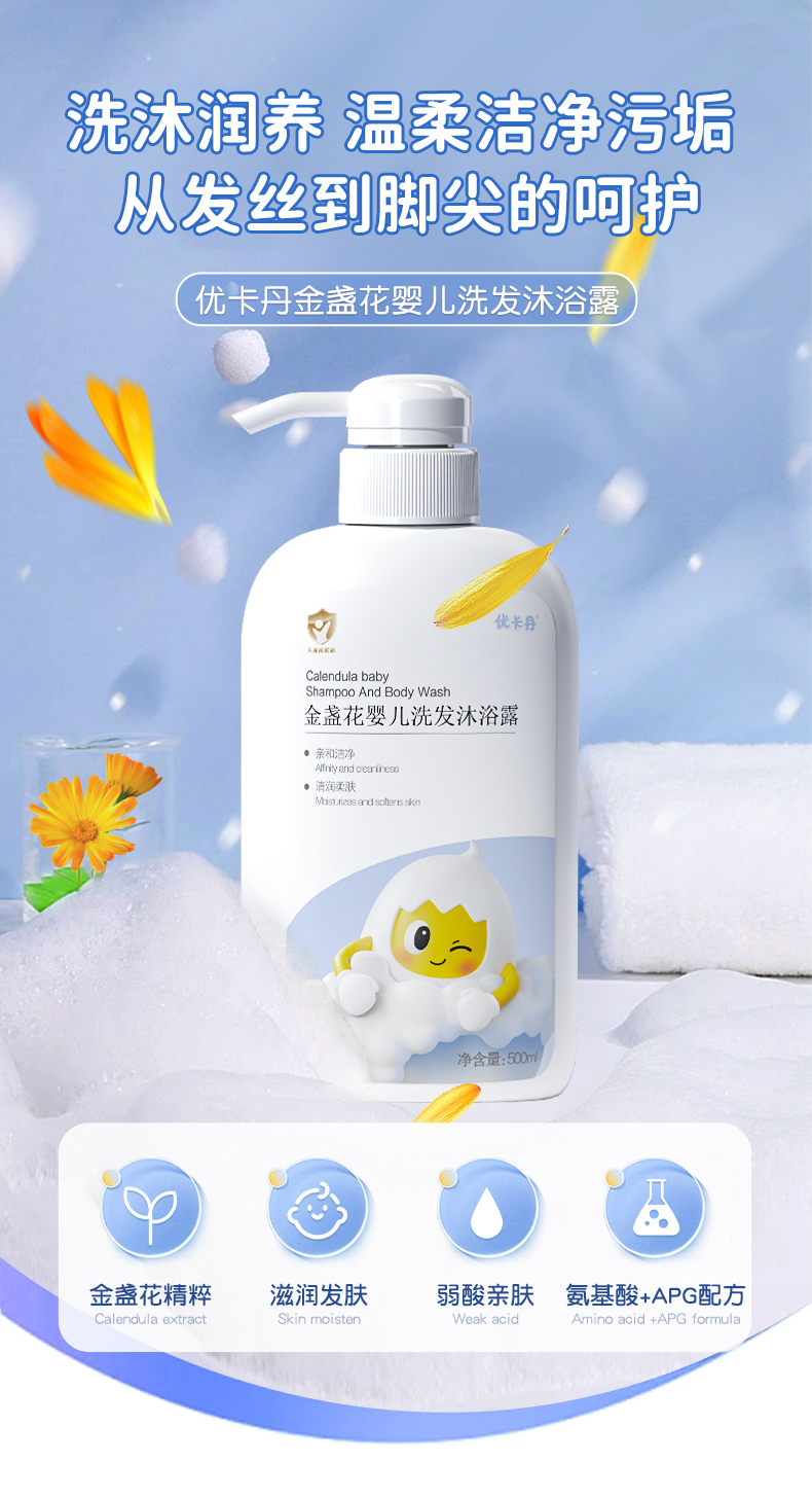 產(chǎn)品名稱(chēng):優(yōu)卡丹金盞花嬰兒洗發(fā)沐浴露