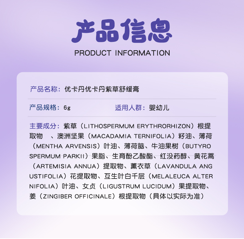 產(chǎn)品名稱:優(yōu)卡丹紫草舒緩膏