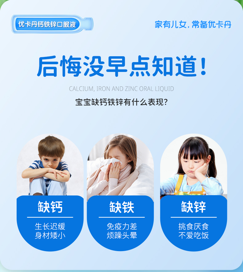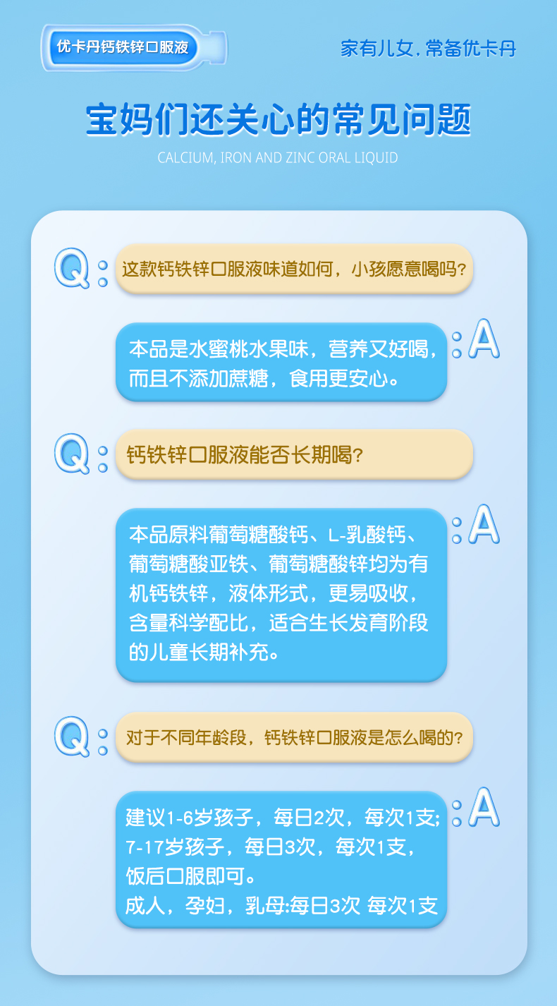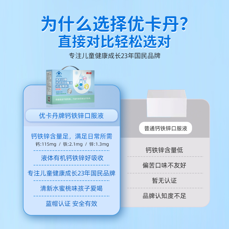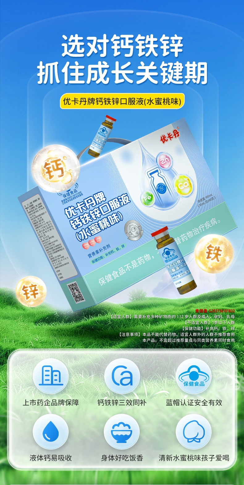 產品名稱:優卡丹牌鈣鐵鋅口服液(水蜜桃味)