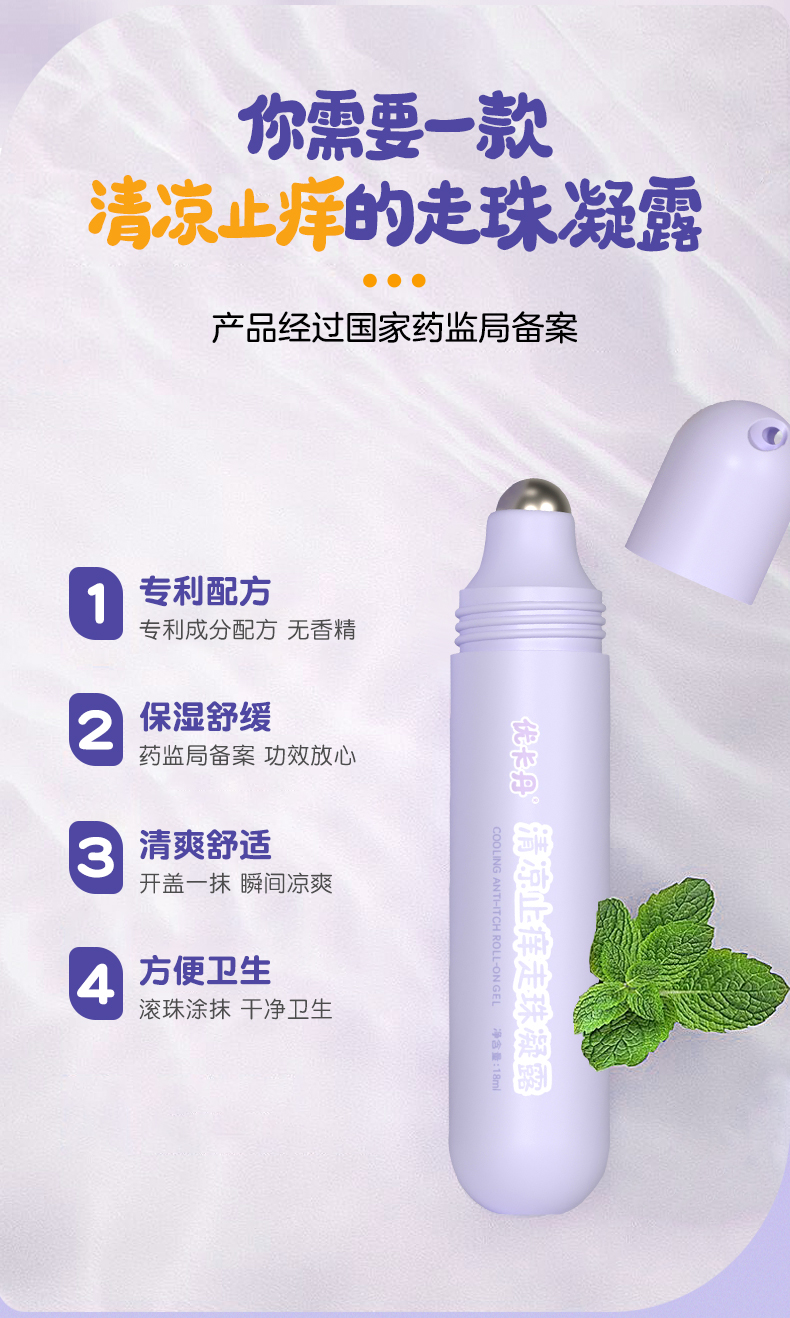 【產(chǎn)品名稱】?jī)?yōu)卡丹清涼止癢走珠凝露
