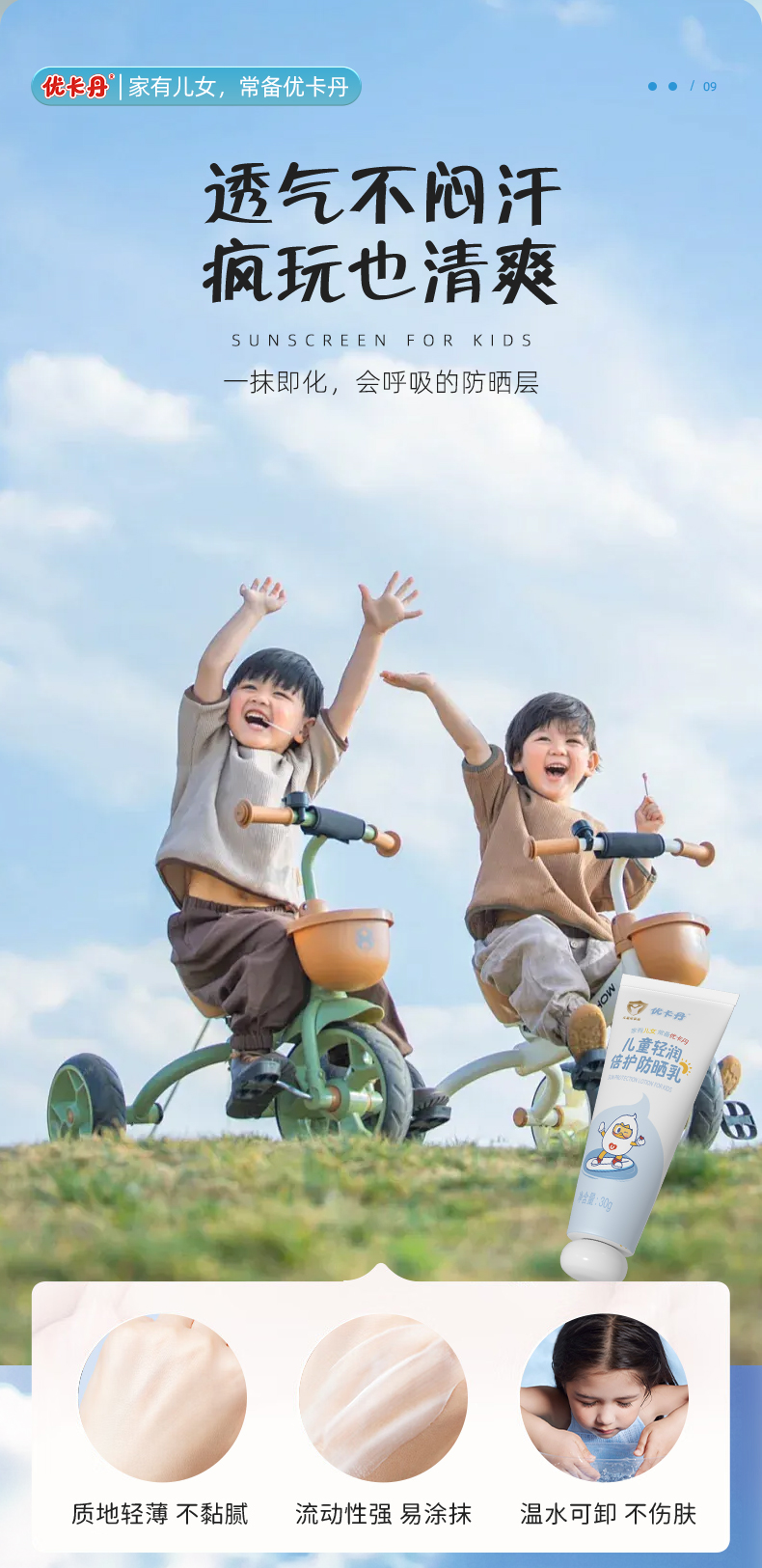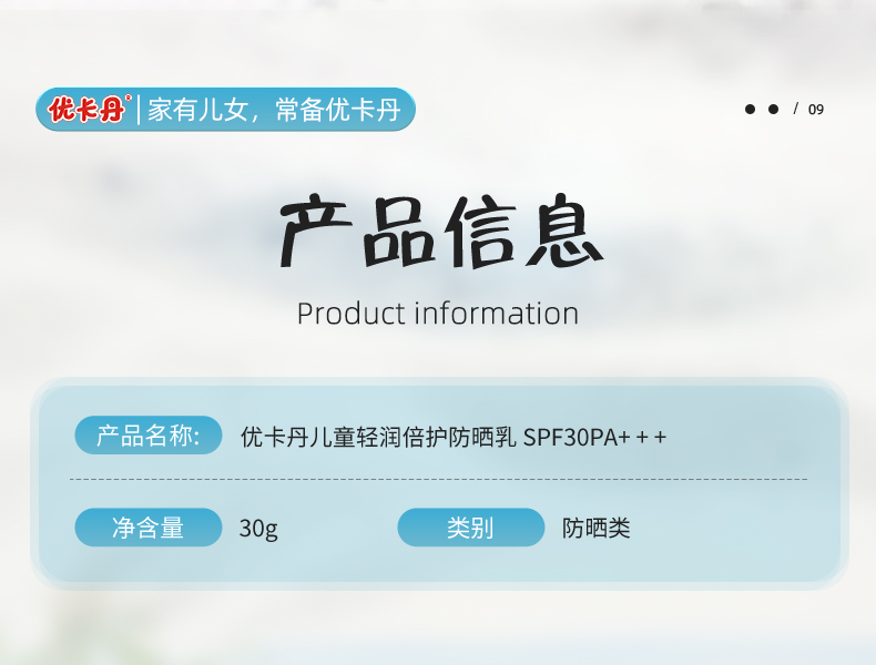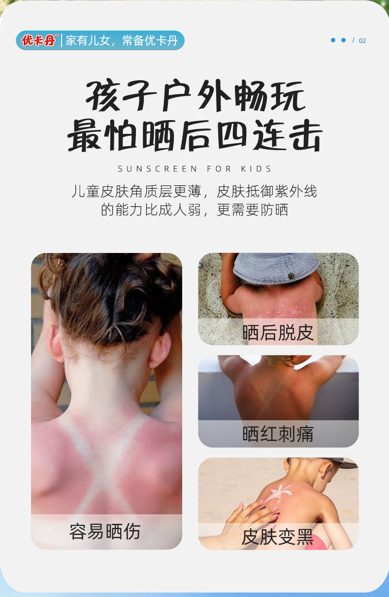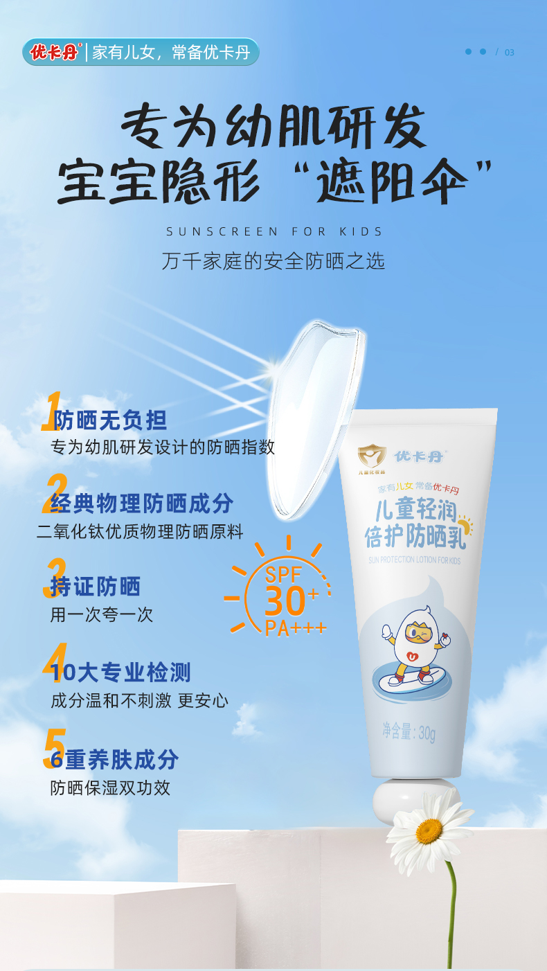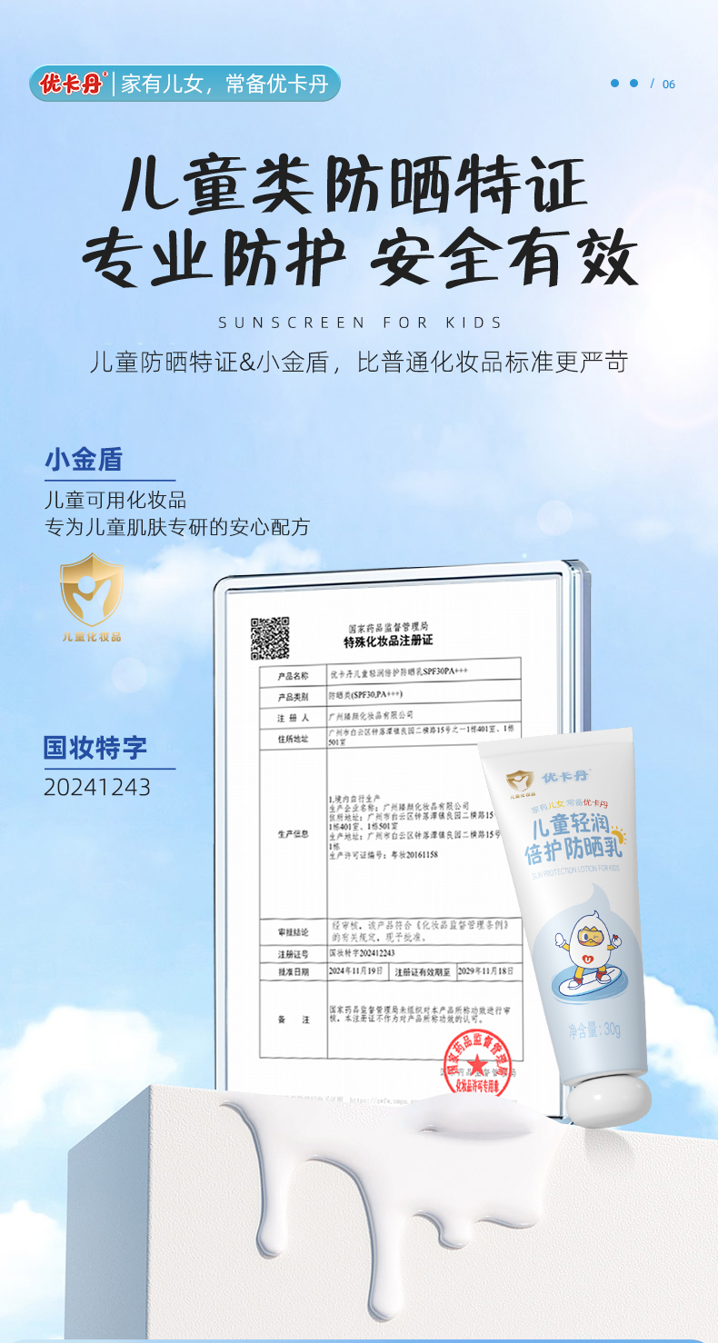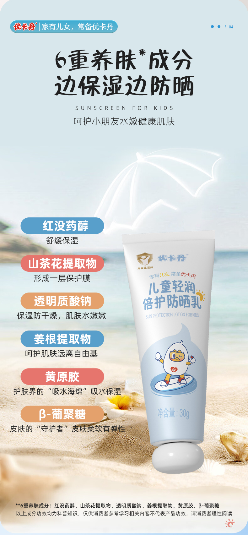 【產(chǎn)品名稱】優(yōu)卡丹兒童輕潤倍護(hù)防曬乳 SPF30PA+ + +