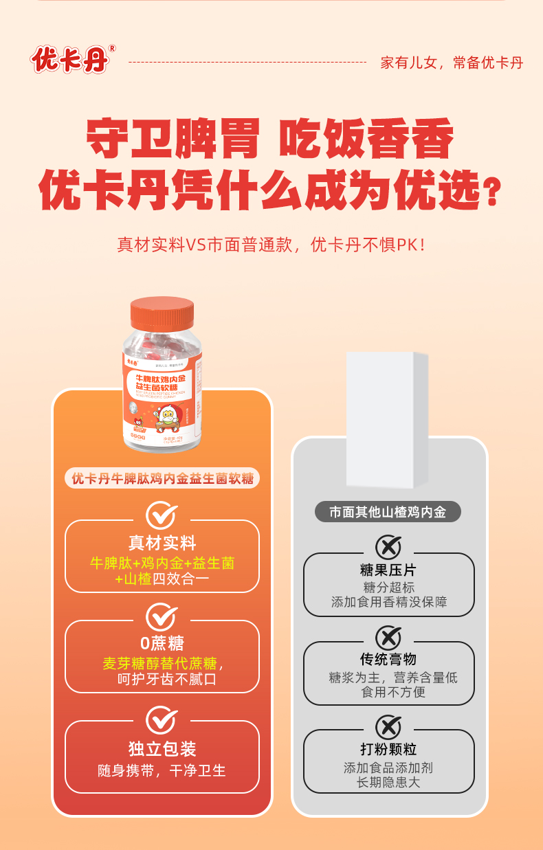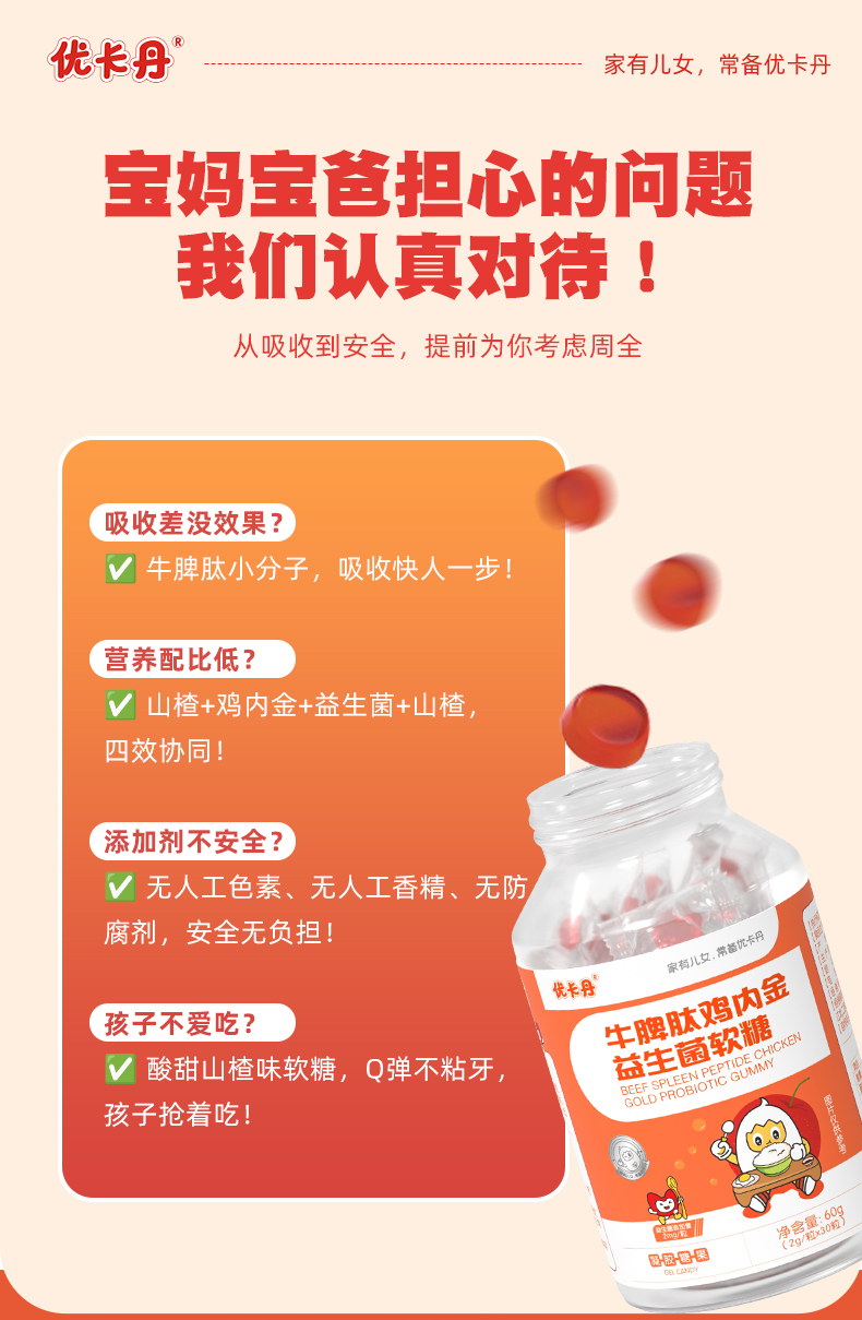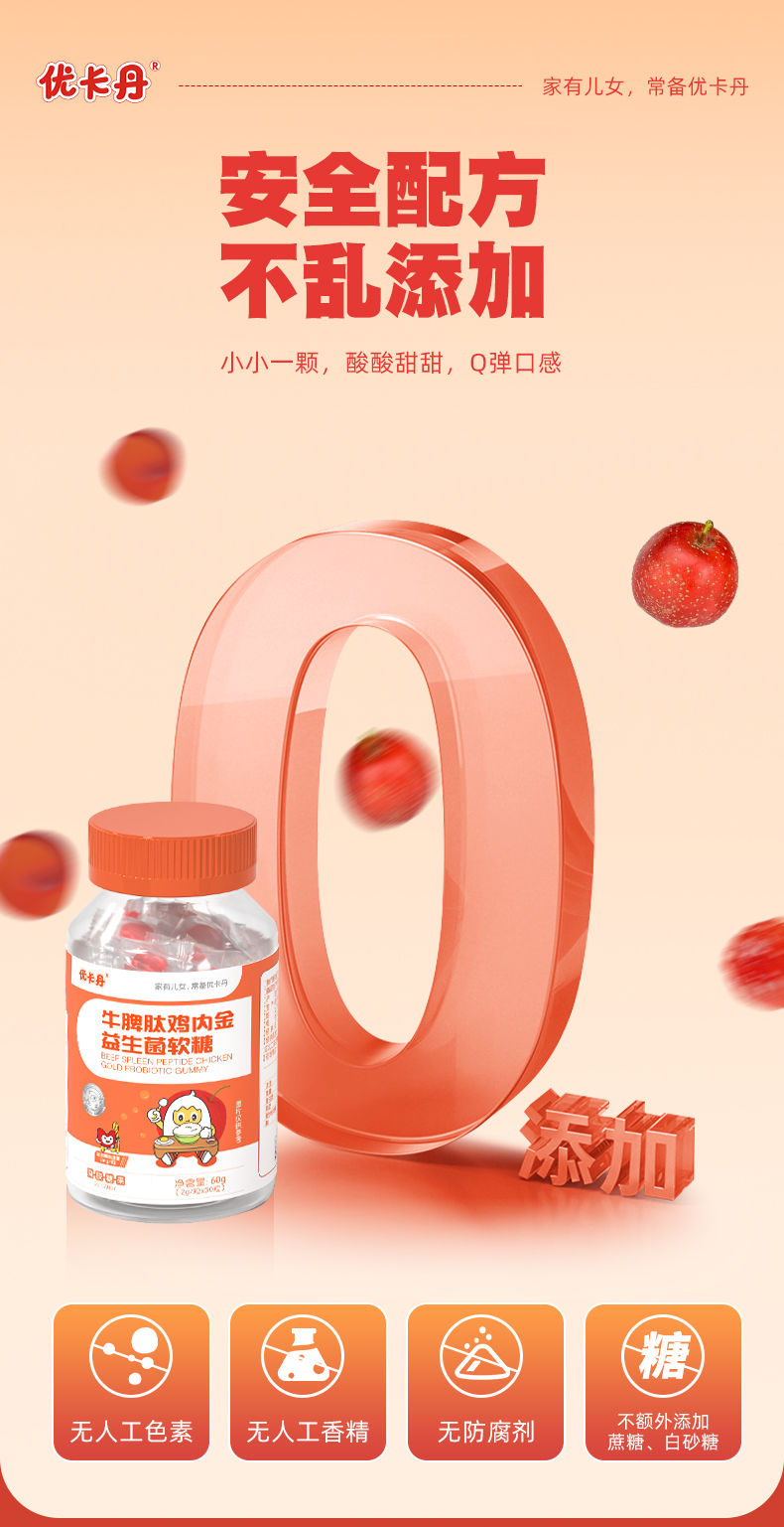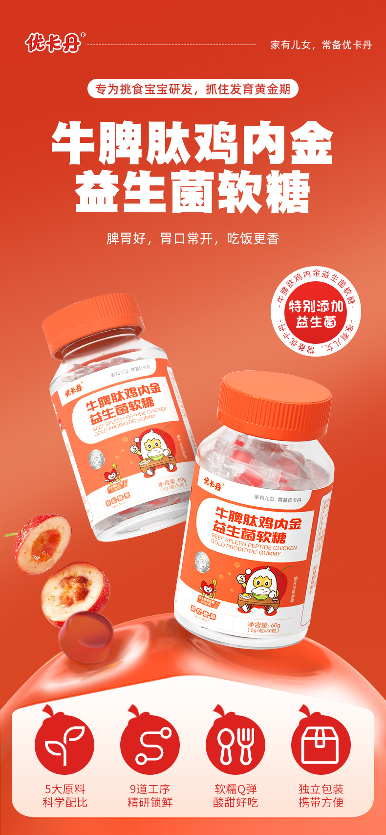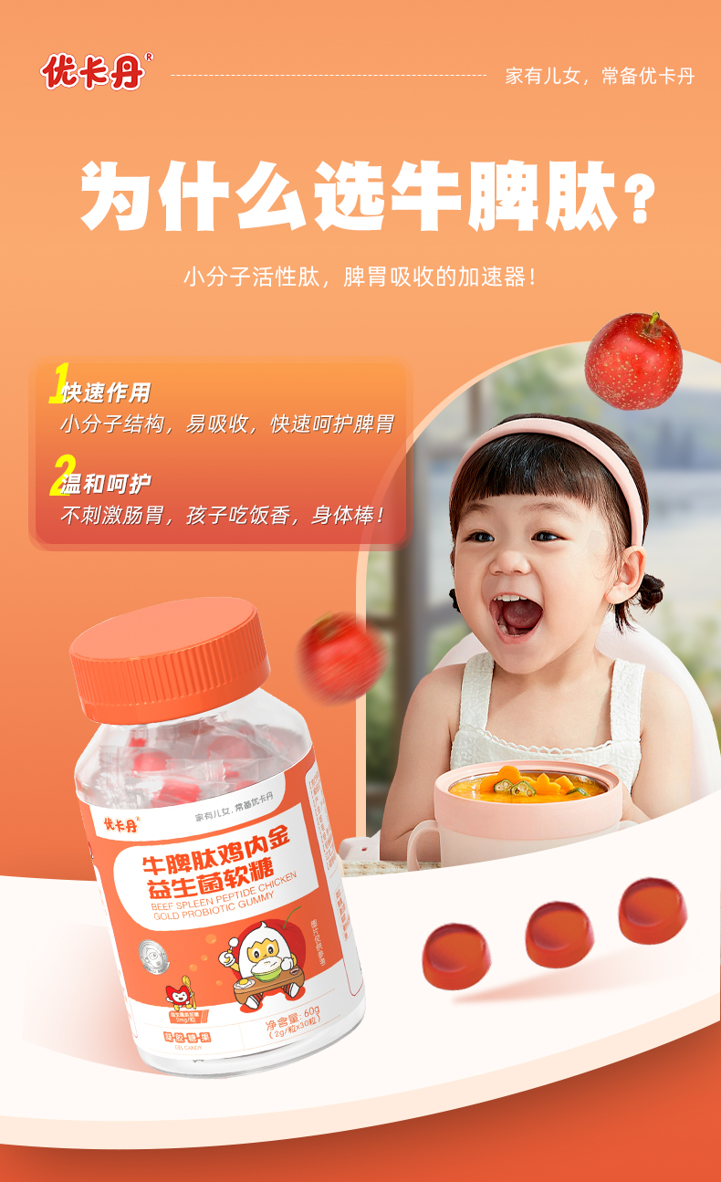 優(yōu)卡丹牛脾肽雞內(nèi)金益生菌軟糖