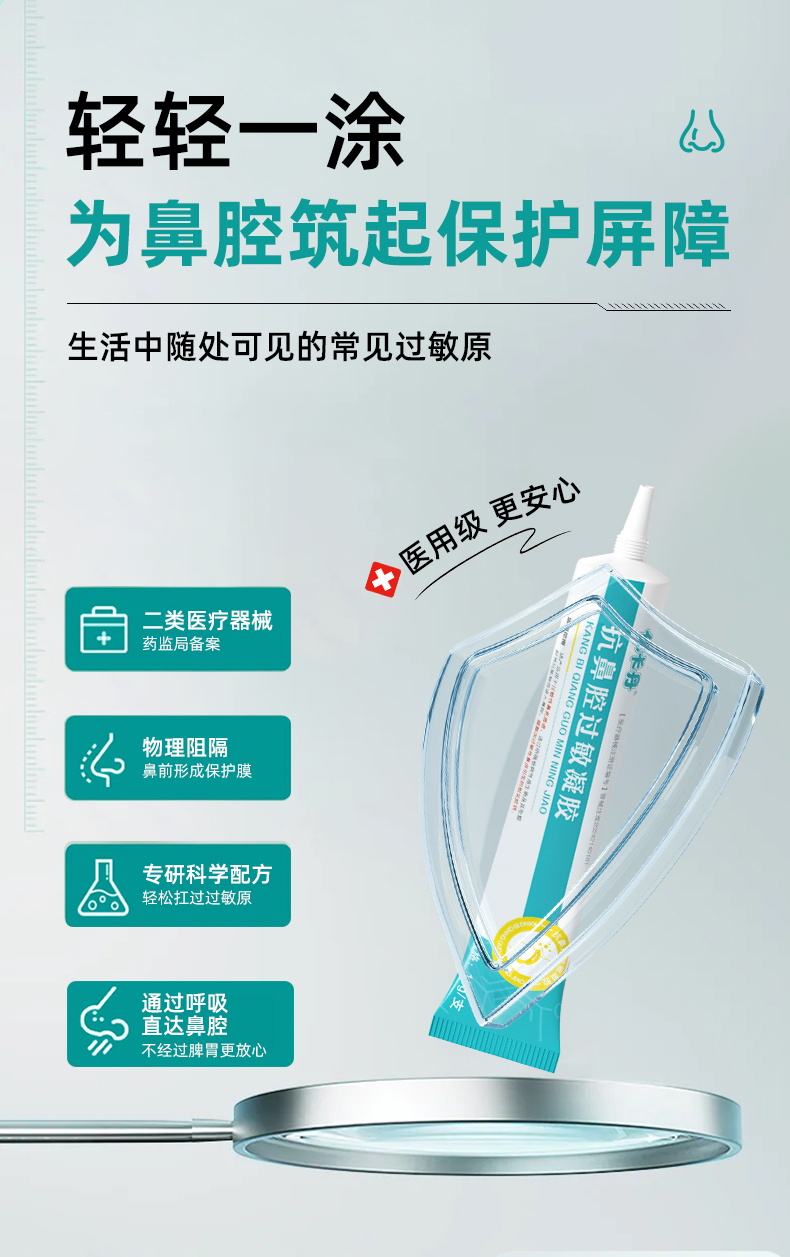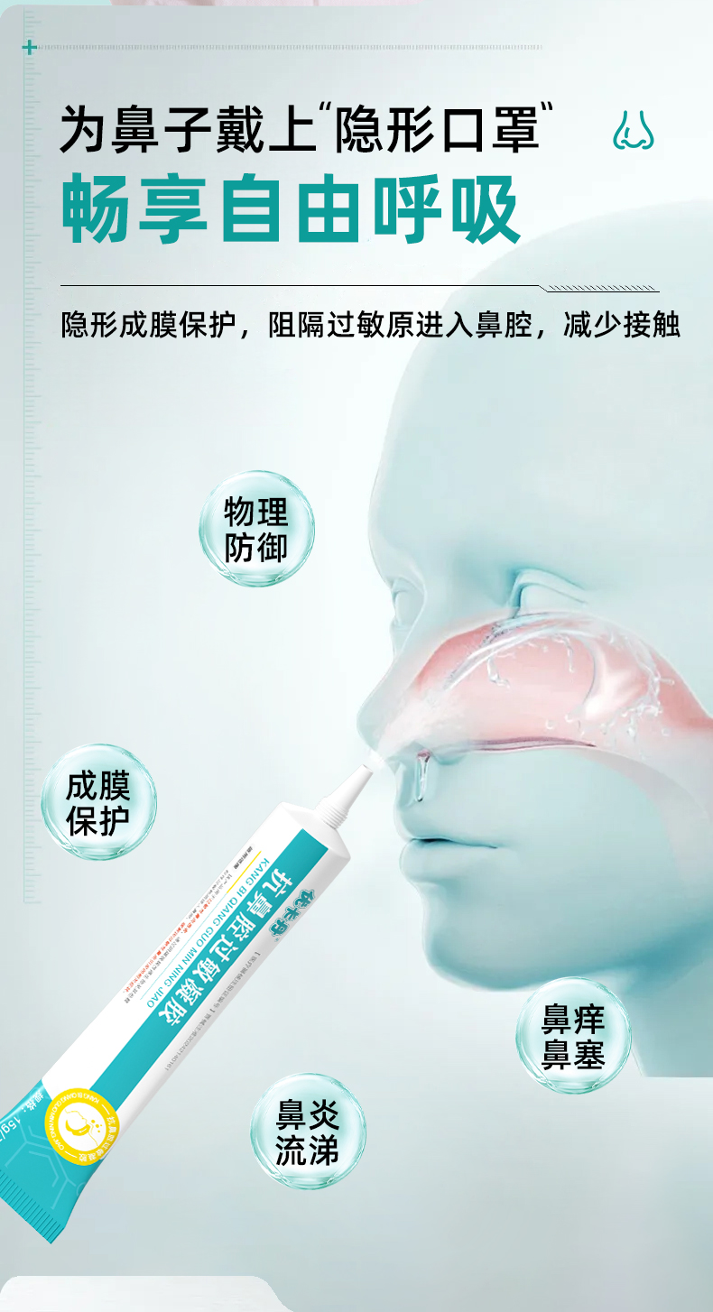 【適用范圍】該產(chǎn)品用于過敏性鼻炎患者,通過阻隔致病性微生物及其他顆粒性過敏物質(zhì)進入鼻腔,緩解因過敏性鼻炎引發(fā)的相關(guān)癥狀。