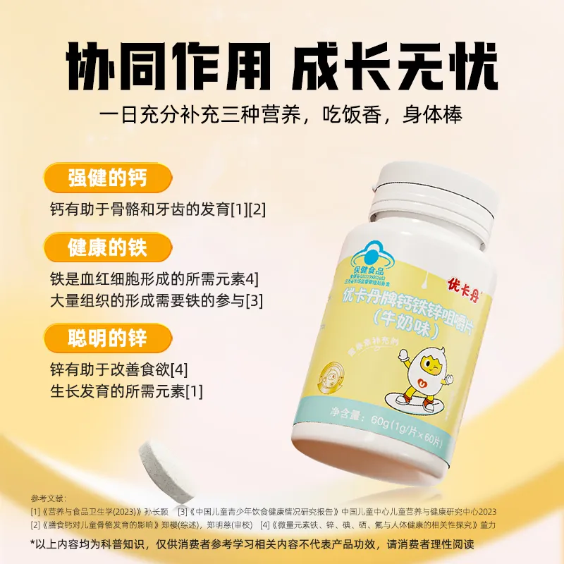 優卡丹牌鈣鐵鋅咀嚼片|營養嚼著吃,成長更輕松