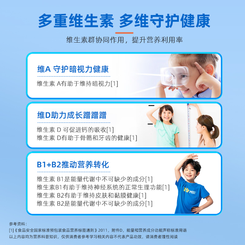 多維度營養聯合“作戰”,維生素群協同作用,提升營養利用率。維生素A,守護寶寶的暗視力健康;維生素D,助力鈣的吸收;B族維生素,則參與能量代謝,維護神經系統與皮膚健康。