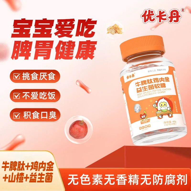 優(yōu)卡丹牛脾肽雞內(nèi)金益生菌軟糖│正確貼秋膘,長個長肉不積食